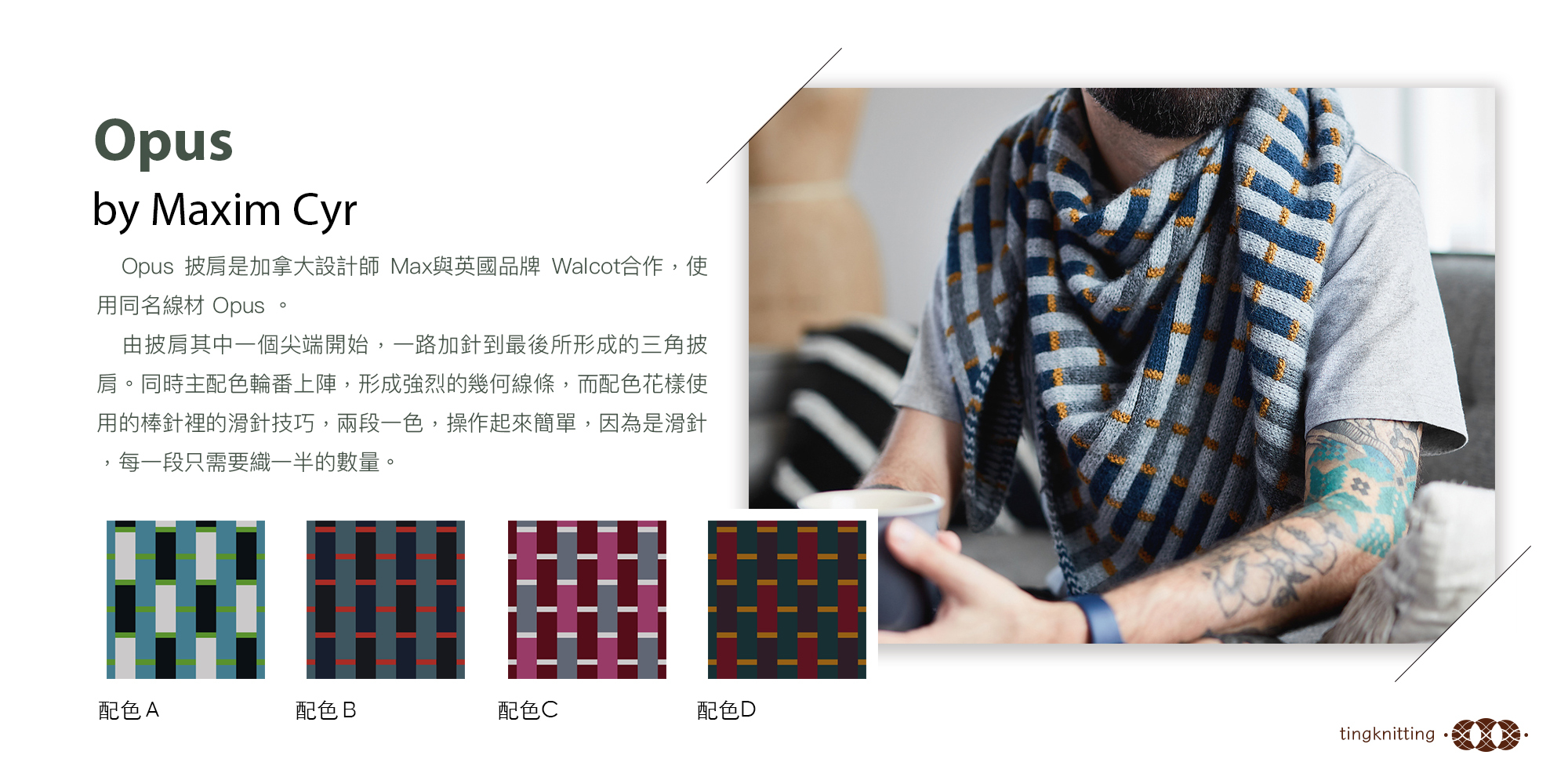 懶人配色包將店中線材來個大混用,在這個材料包我們注重的是顏色彼此間的調和程度,而線材形式為其次,會有各種 plied yarn 與 singles 混用場合,也會有毛海、light fingering 以及 fingering 各種混用,此配色包裡的線材都可各自與手上的線材,抑或是五絞選其中三絞各自搭配,請自由發揮不要太受限,套句西先生說的「 Say yes, don't strees」