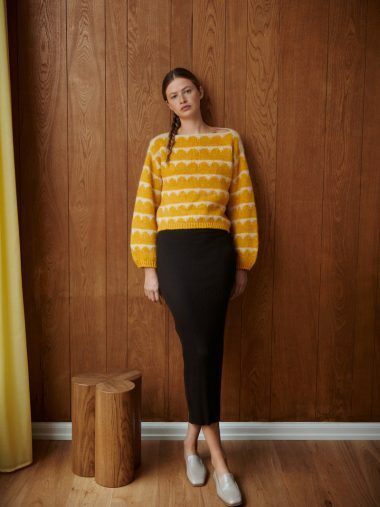 Isager Tweed colour Lemon, Silk Mohair colour 64, Tvinni colour 22(可用 Highland 或 Alpaca 2替代)