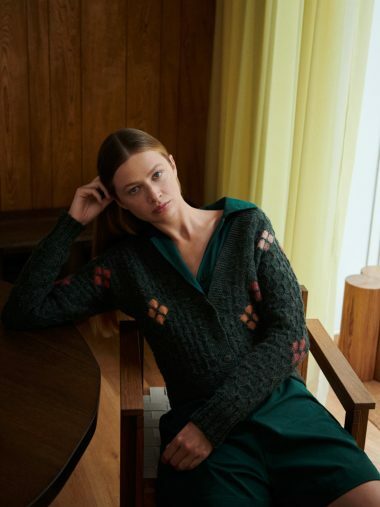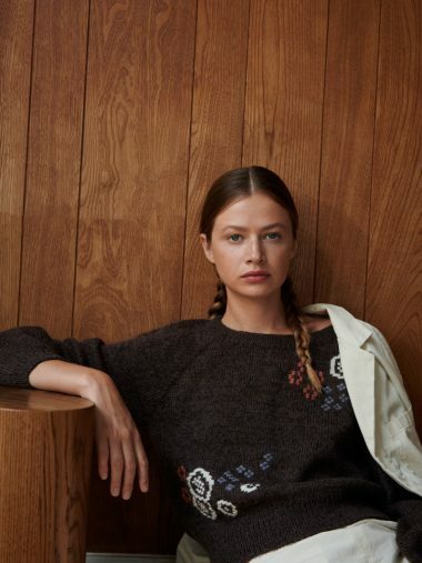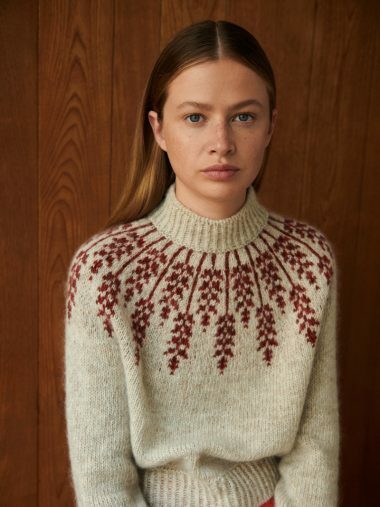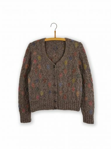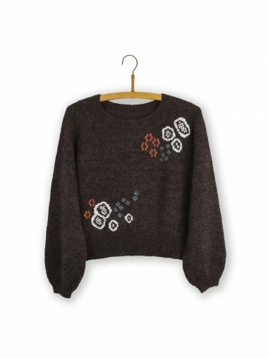 ARONIA cardigan 是由下往上織的結構,使用 Isager Tweed 以及 Isager Alpaca 2 兩股一起合織. 這件外套在細節處使用到許多技巧,V領、合身的袖子、妥善處理得釦眼以及許多美麗的小細節待你發現。外套上的刺繡花樣是你展現個性的地方,有無限的可能性,刺繡使用到兩股絲毛海,很適合用掉手上的剩線。在織圖中有提供部分技巧的說明影片。