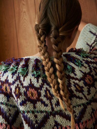 MIDSUMMER 的靈感來自於盛夏盛開的所有美麗花朵。 我使用了 hexagon技術,針腳鬆散地滑,然後在幾段之後再編織,以這種方式形成圓形,填滿了顏色以形成花卉圖案。 外套主體開衫是用一股 Isager Tvinni 和一股 Isager Alpaca 2合織。花朵由 Isager Spinni 和 Isager 絲毛海合織而成。 你可以使用剩線,最好使用多種不同的顏色。