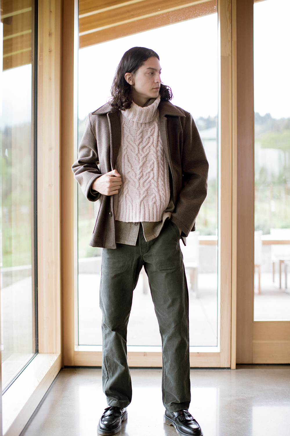 Luft 為鎖鏈狀線材富有空氣感,針號的接受度也很寬容,從 5.5mm-8mm都適合使用,鎖鏈狀線材能讓空氣在纖維之間流動,是保暖與輕盈的關鍵。