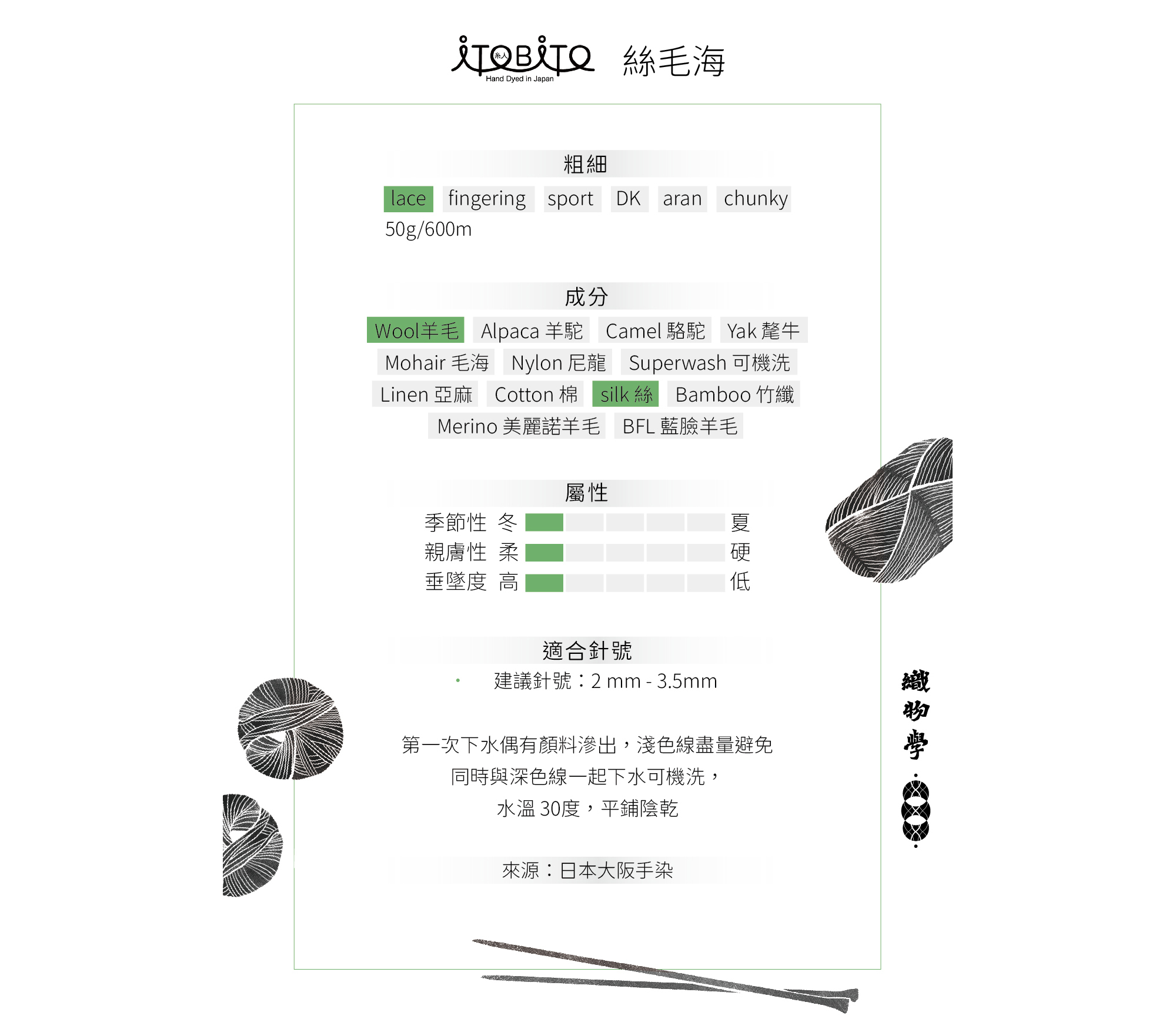 成分 : 60% Superkid Mohair幼毛海 40% Silk絲